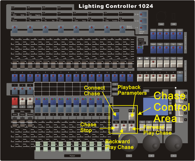 Once the chase are connected, they can be controlled with , and . and are to control the playback direction. To store the running speed, press then [Save Speed & Dir].