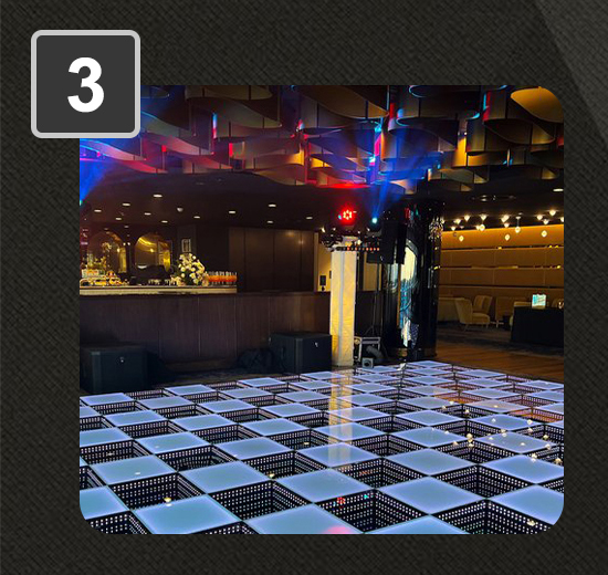 | Utilizing an LED dance floor can elevate the atmosphere and vibe of a party, providing a heightened sense of immersion and entertainment for attendees. Moreover, the option to personalize the lighting adds a distinctive and unforgettable element to the occasion. |