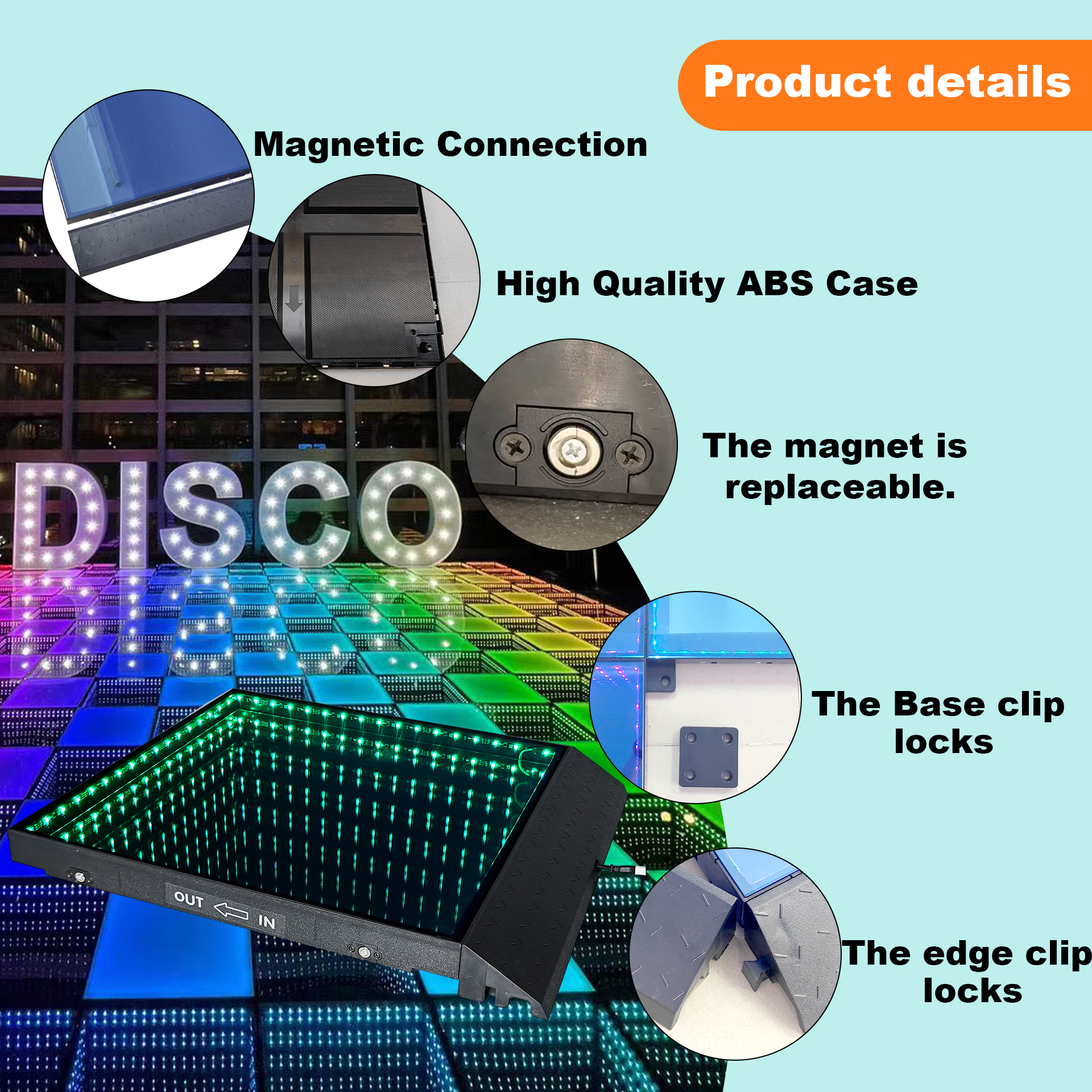 3. For the LED dance floor, we have a magnet whose size is 60*60cm; why choose a magnet dance floor?